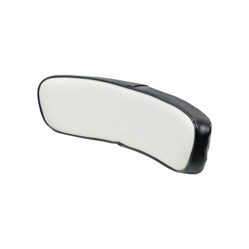 Durable Black & White Vinyl covering, steel core, 2″ thick foam cushion for operator comfort, has 14.5″ 2-bolt pattern and bolts to the original fiberglass back with pipe frame